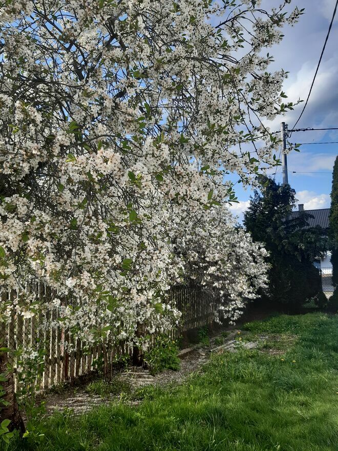 Na działce sad: wiśnie ,jabłka, maliny, porzeczki itp.